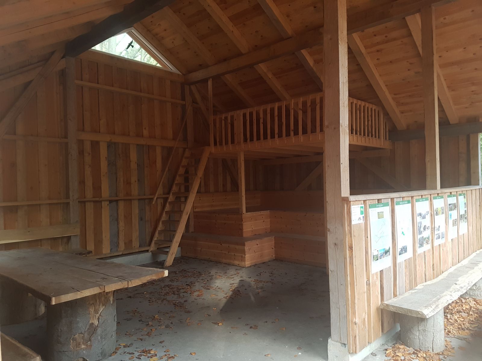 Kombination af madpakkehus, infocenter, shelter og samlingssted for naturentusiaster. Jagthuset ligger midt i skoven, tæt på fuglereservatet Ølene. Huset indeholder siddepladser under tag, primitivt toilet uden vand, bålsted og hems til overnatning.