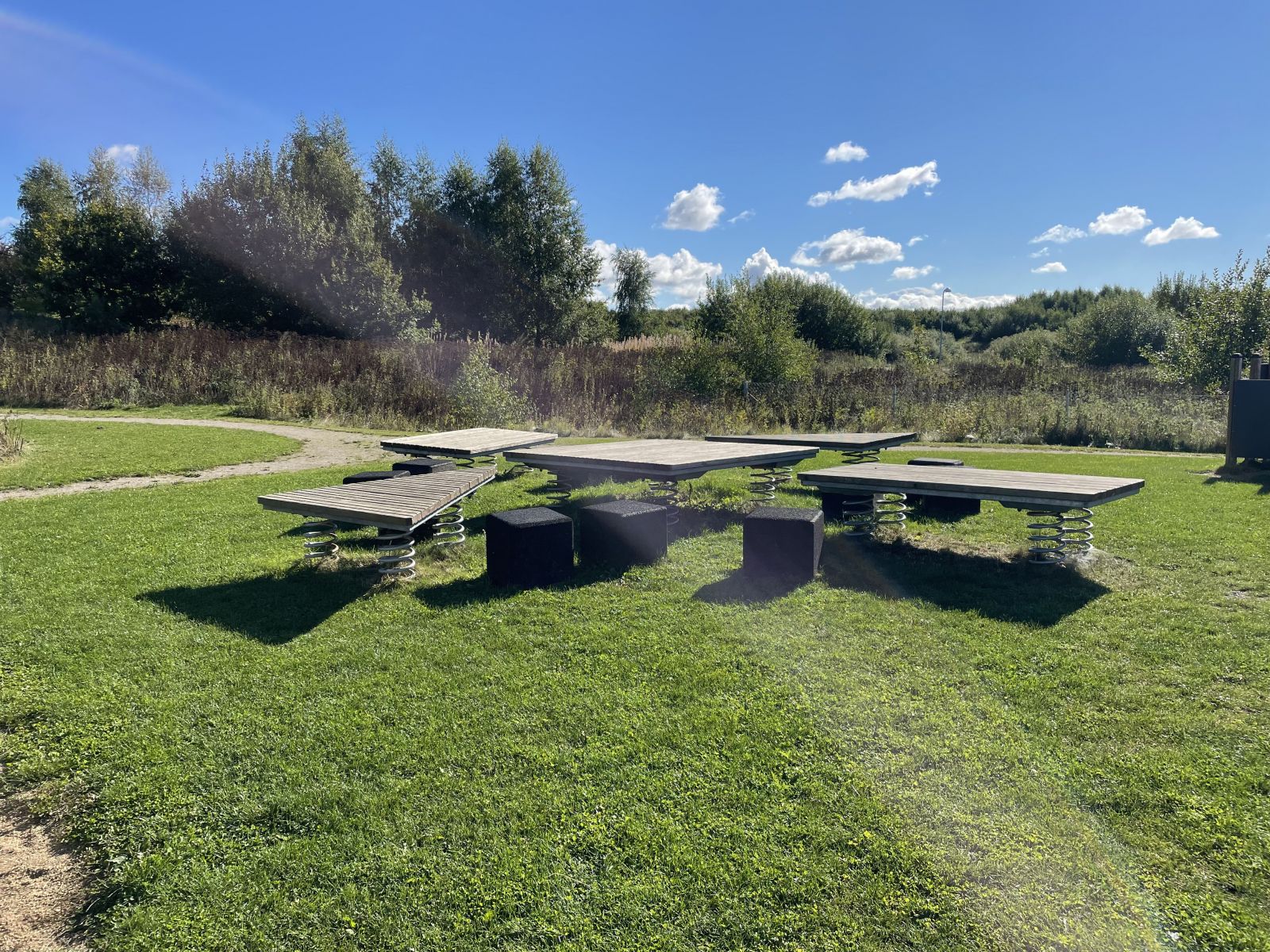 Legeplads for enhver barnlig sjæl, hvor der er adgang til klatrestativ, gynger og rutsjebane m.m. Der er to borde/bænkesæt på arealet, som man er velkommen til at benytte.