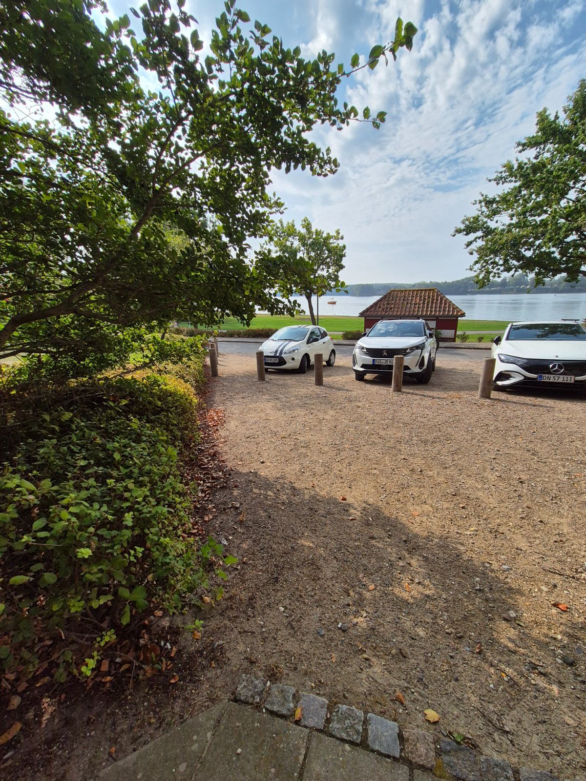 Der er en del parkeringsmuligheder ved Christiansminde, heraf 2 steder med handicap parkeringsskilt.