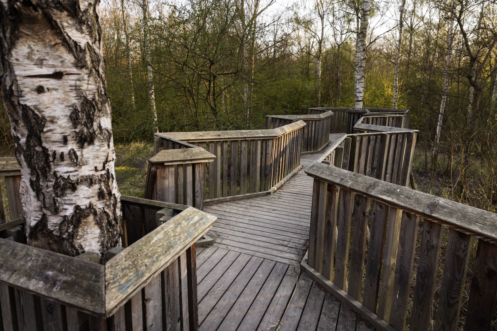 I skoven er der en platform, hvor du kan nyde udsigten af skovens træer og et lille vandhul. Platformen er lavet som en gangbro, der strækker sig mellem 2 af skovens birketræer. Den står på 2,5 meter høje pæle af robinietræ. Dækket mellem de 2 træer er lavet af lærketræ og er i alt 15 meter langt med flere små fremspring, hvor du kan betragte naturen.