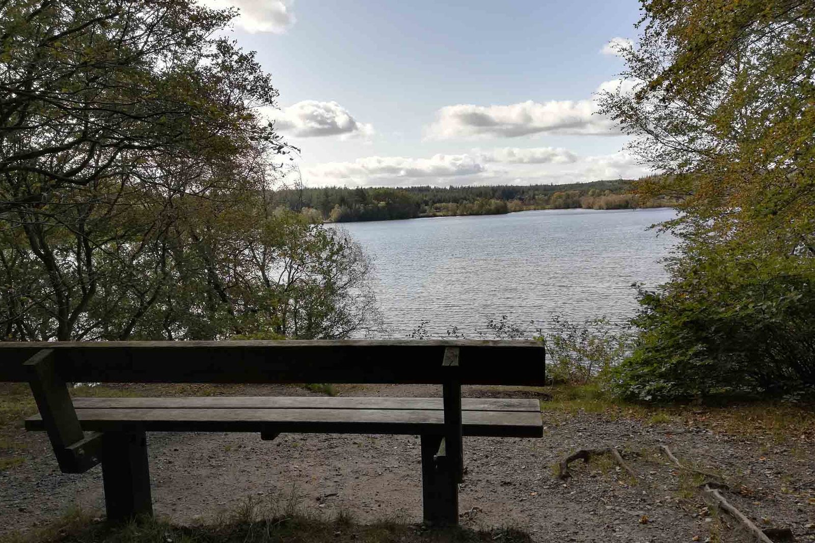 Parkering ved Mosskovpavillionen med adgang til vandrerute rundt om St. Økssø. På turen rundt om søen kommer man forbi grillplads og badestrand.