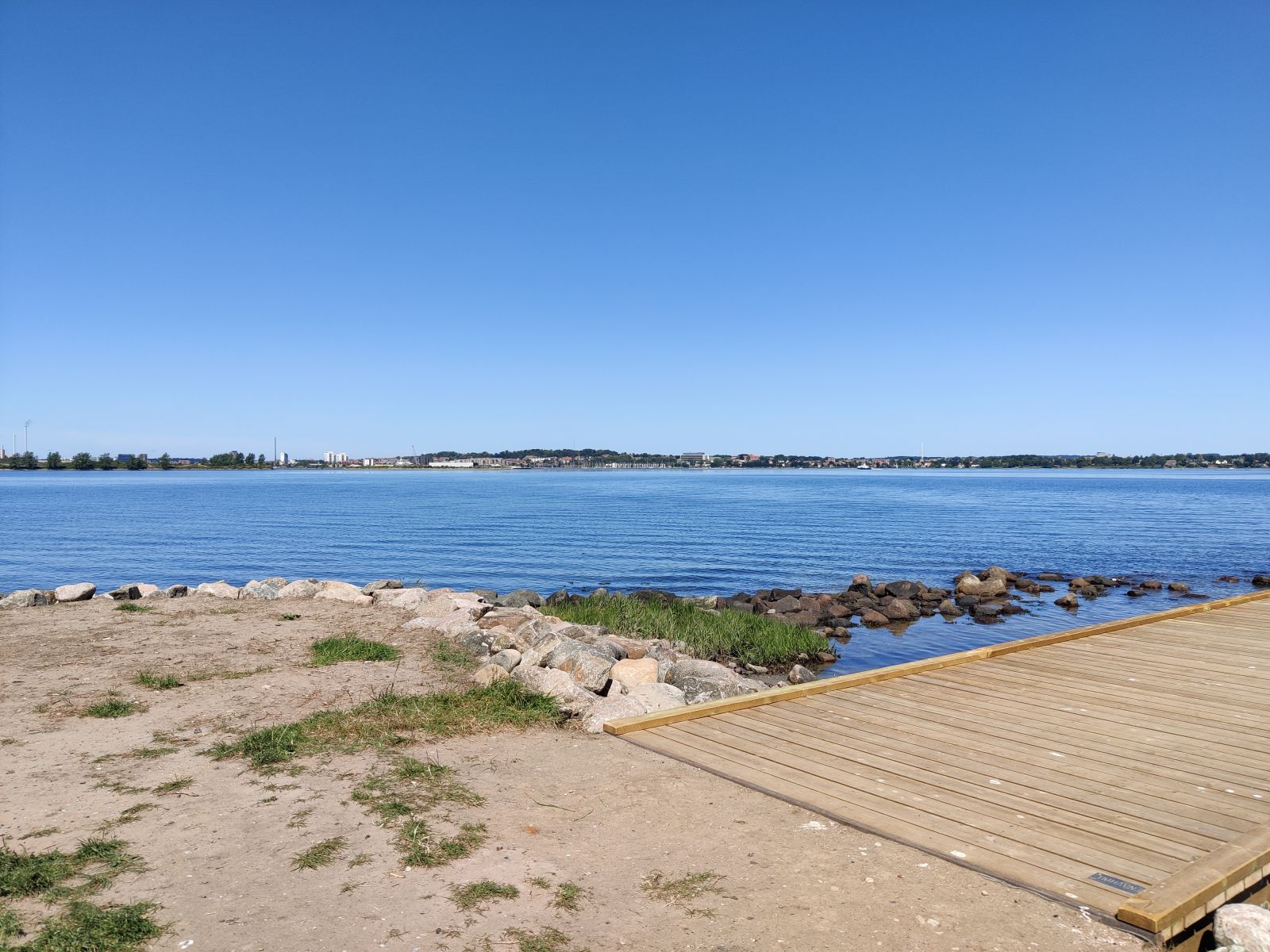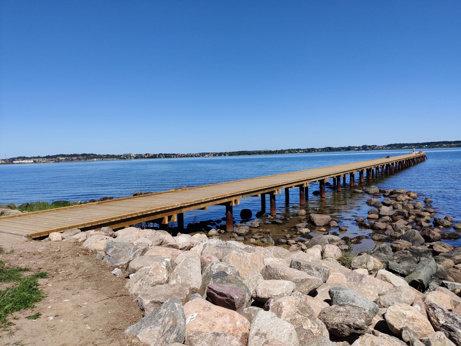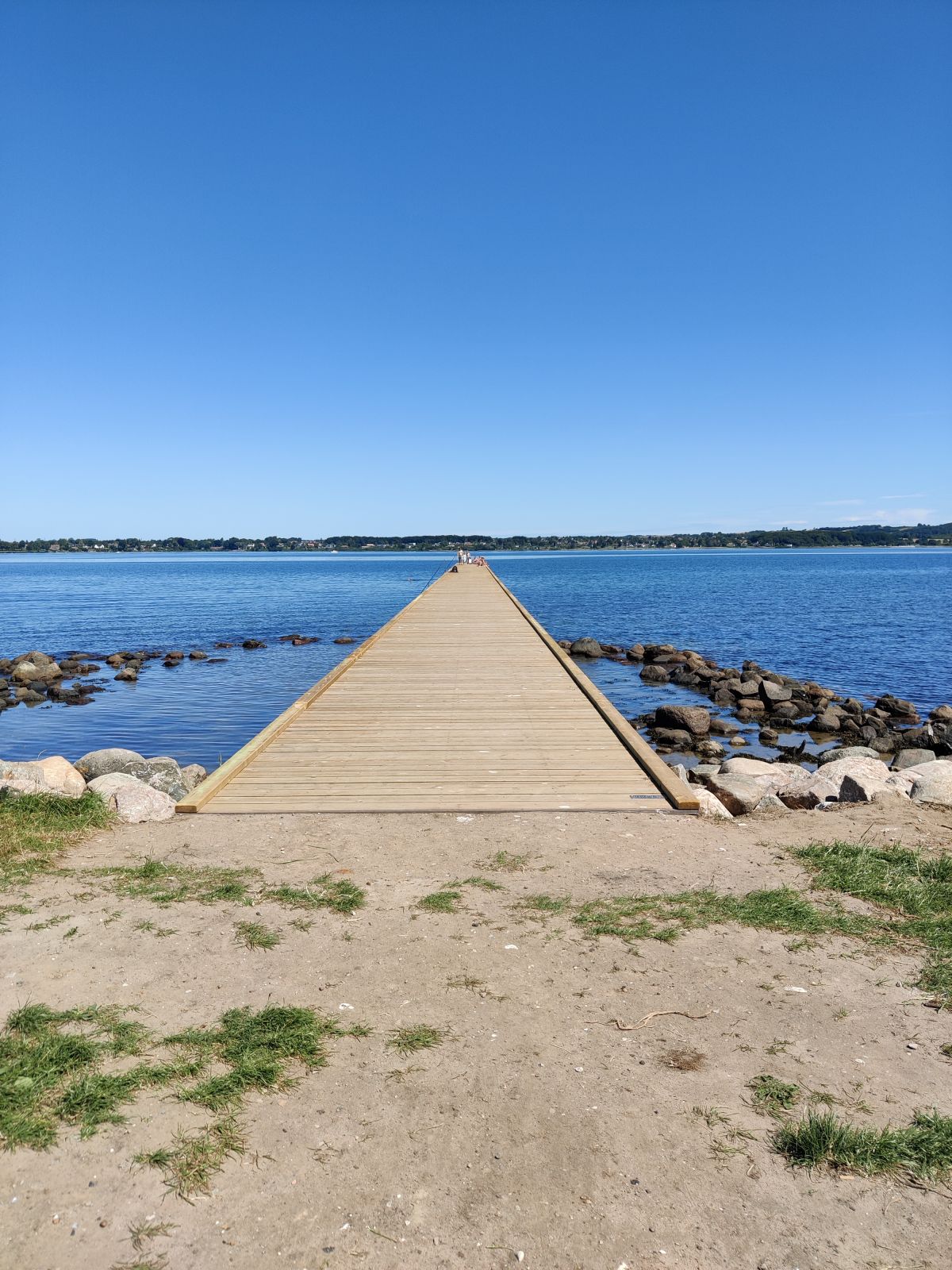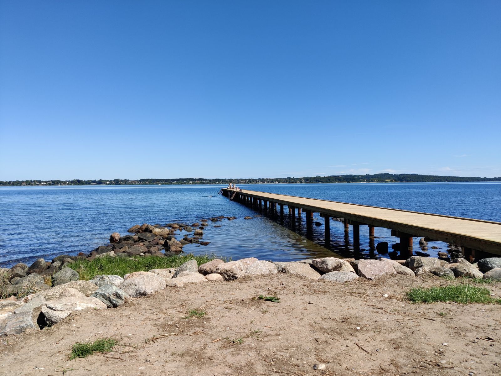 er generelt ret stillestående tæt på kysten. Der er lavet en lang, bred badebro ud fra molen, som giver adgang til klart lækkert vand.