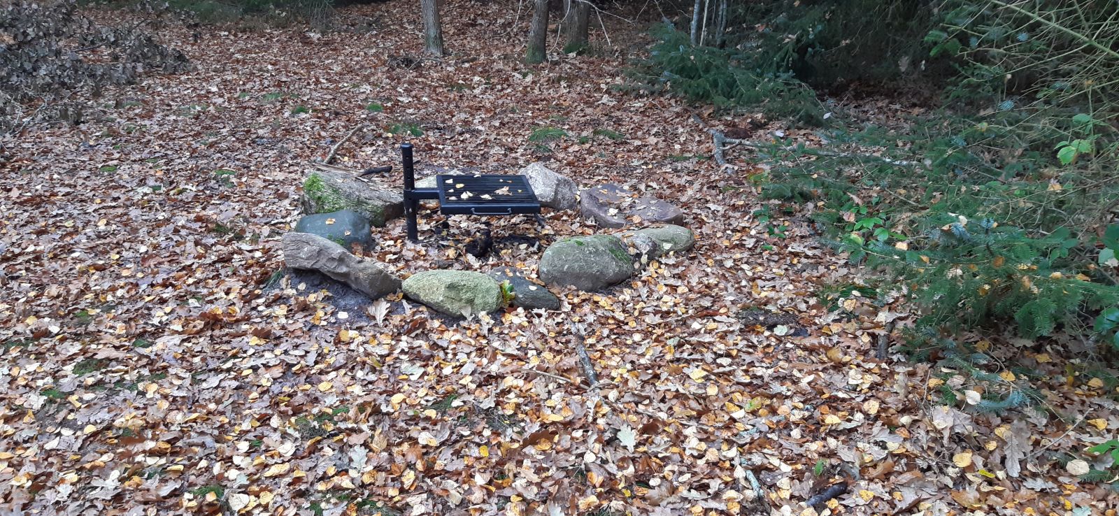 Gl. karpedam i Renbæk Plantage, bålplads ved søen