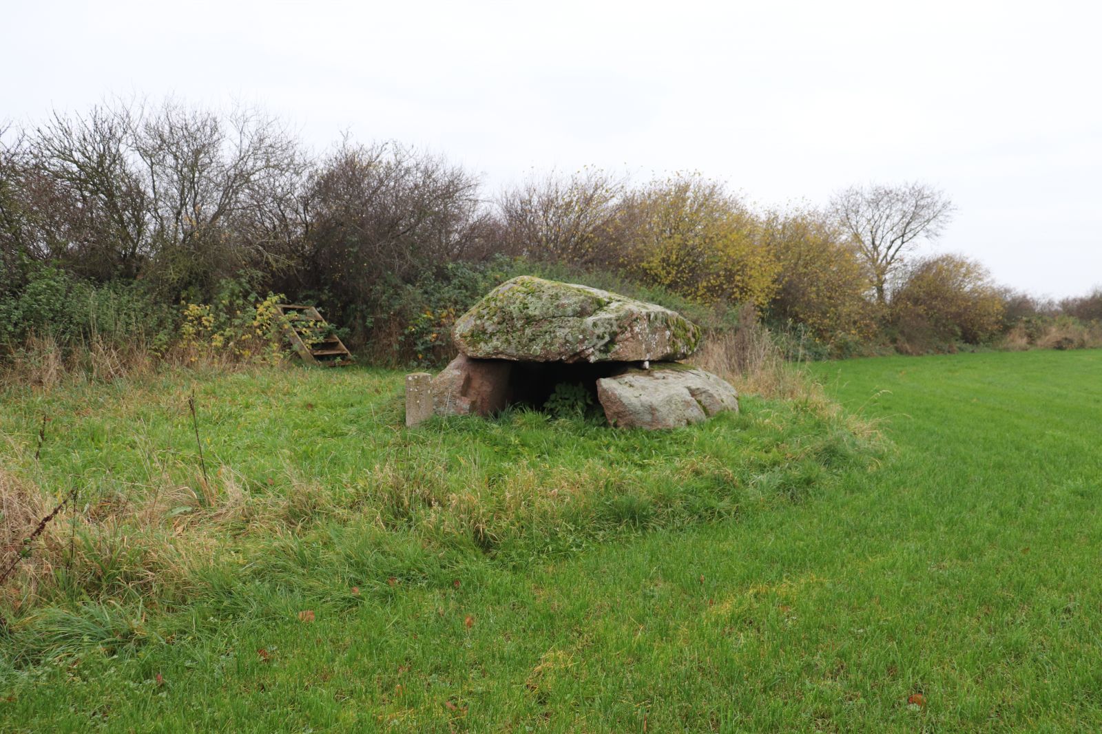 Bag hegnet, der løber langs Sandvad, åbenbarer der sig en smuk lille stendysse. Den har engang været dækket af en jordhøj, men nu står den som et fritstående gravkammer, der består af tre store bæresten og en dæksten. Kammeret vender østsydøst – vestnordvest. Det er 1,5 m bredt i vest og 1,2 m i øst, hvor der er åbent. Kammeret er 2,5 m langt og omkring 1 m højt. Stenene er tilsyneladende udvalgt omhyggeligt, da de er af samme rødlige bjergart.