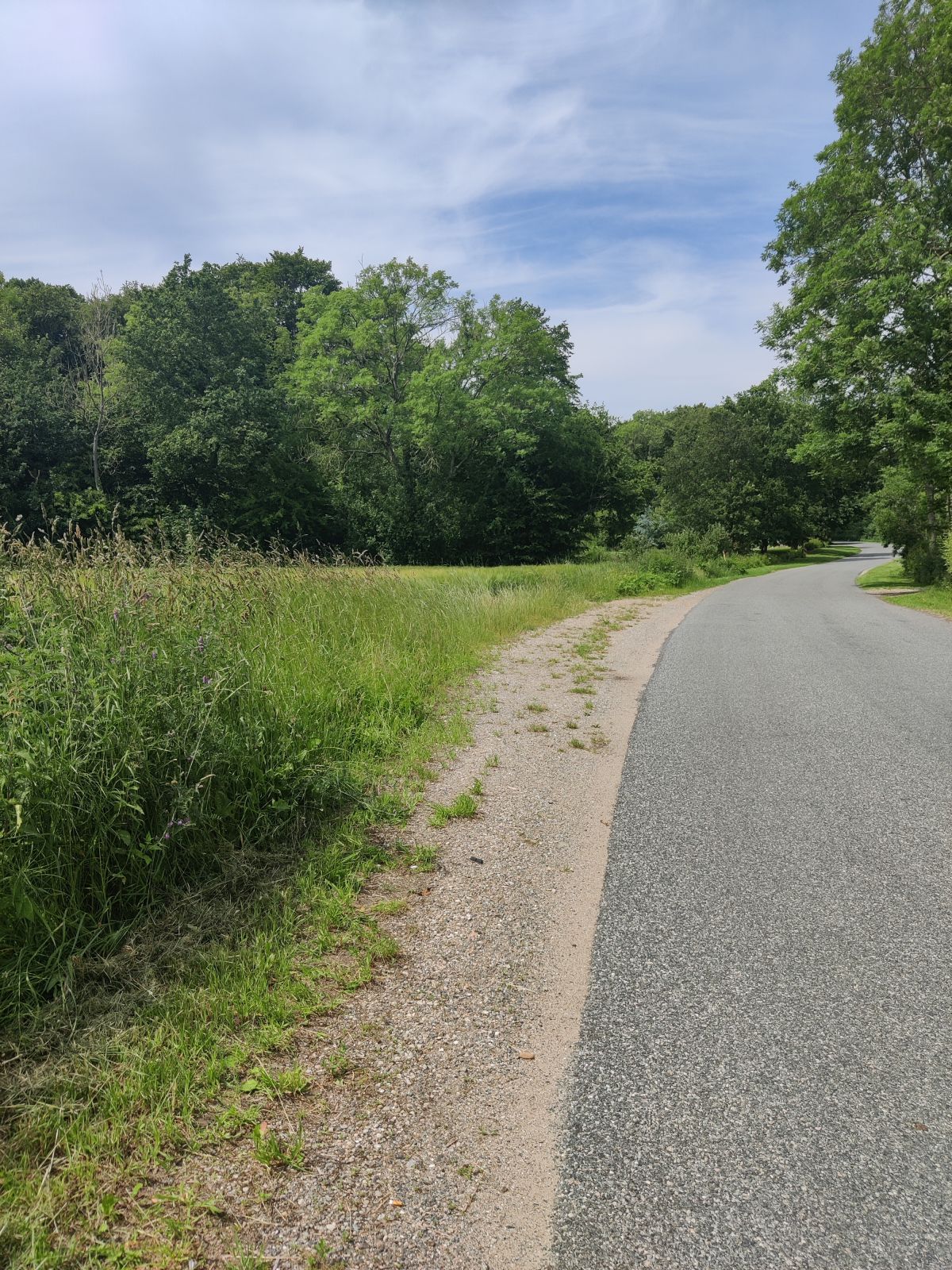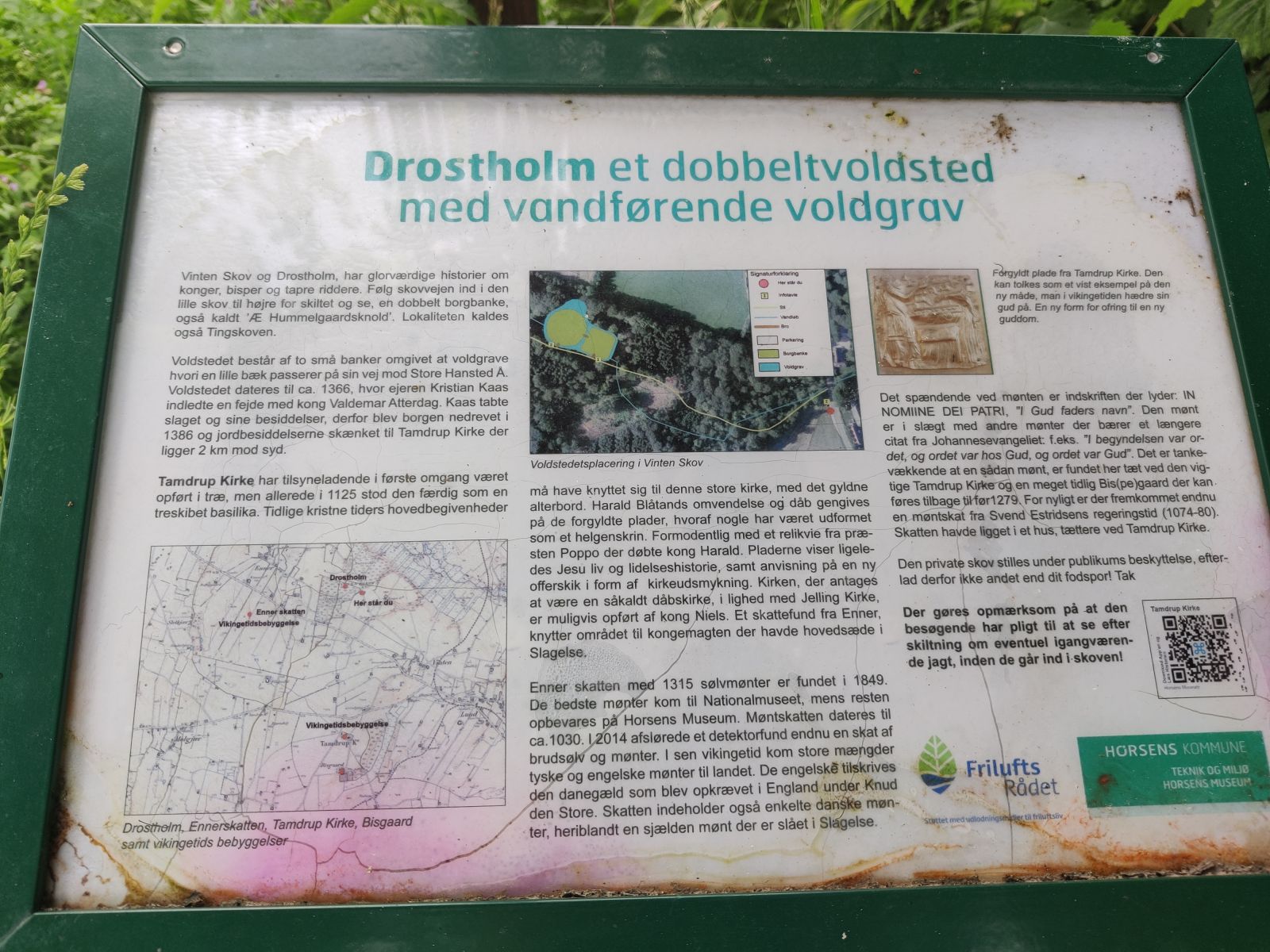 P-plads i forbindelse med privat skov, hvor der er adgang til et middelalderligt voldsted.