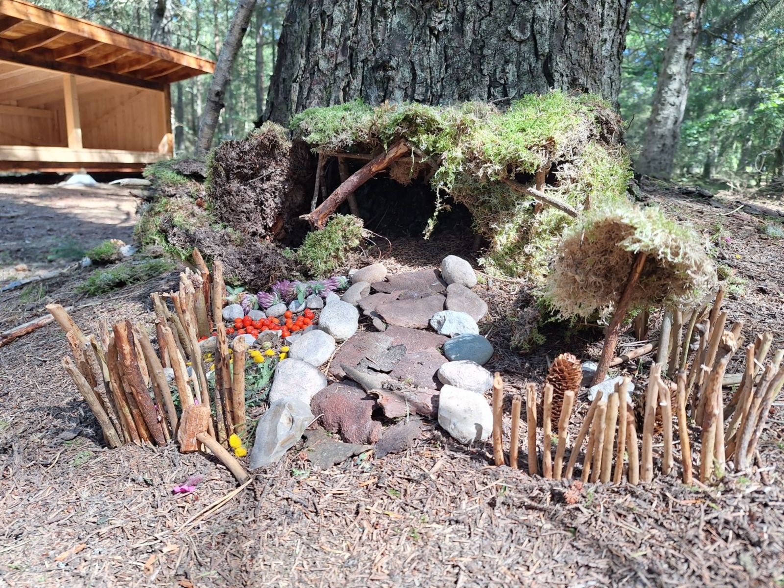 Området omkring skovlegepladsen rummer desuden en veludviklet nisselandsby bygget af skovens materialer