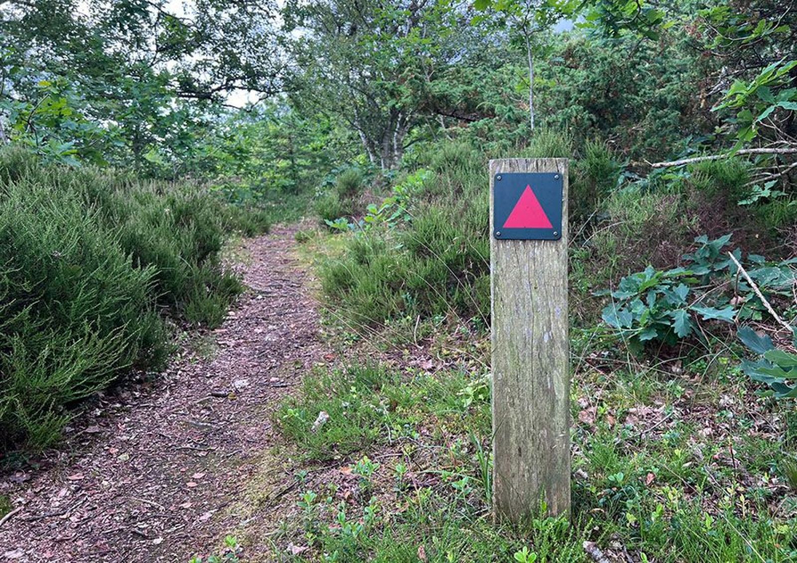 Lyngstien går ad slyngede stier omkranset af et tæt tæppe af lyng, tyttebær og blåbær gennem egekrat, over hede og langs Kattegatkysten. Lyngstien er afmærket med røde trekanter.