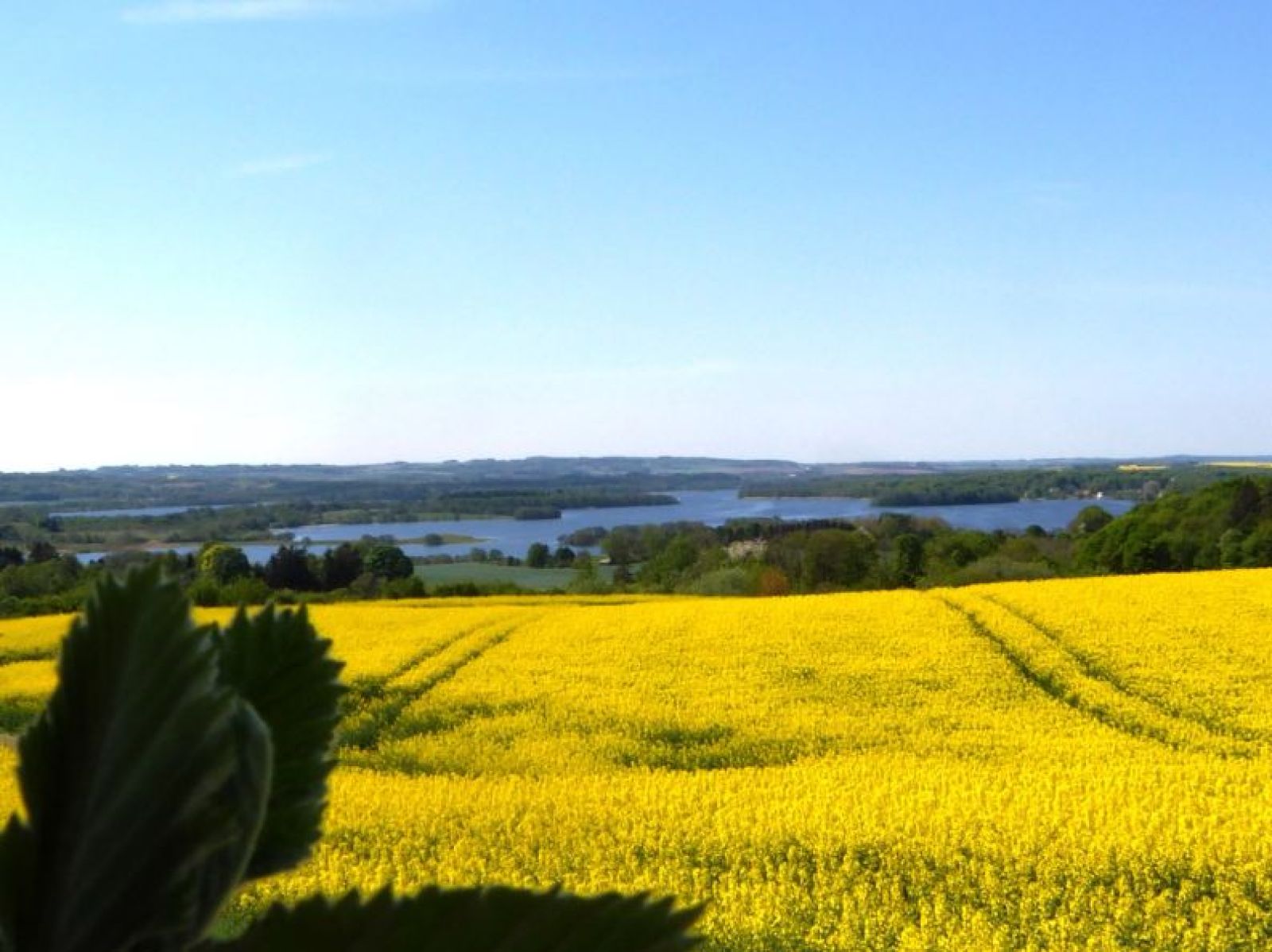 Flere steder på turen er der fin udsigt ud over Skanderborg Sø - og på en delstrækning, har man et fint udkik til Fruering Kirke.